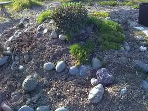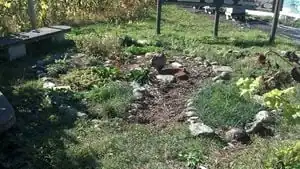 What: The objective was to restore the existing herb spiral by adding medicinal and culinary herbs. Before the project the herb spiral contained only two types of sage, one tarragon, one chamomile, four varieties of thyme, and one skullcap. The herbs I added were two garlic, two varieties of yarro, chives, parsley, a variety of mints, feverfew, four varities of oregano, lemonbalm, stevia, and marjoram. I also added soil and stones to the spiral, labeled the herbs, and constructed a sign for the herb spiral.