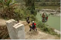 Wire Bridges (Tuin) are an indigenous technology, and one of the most common structures for river crossing in the hilly regions of rural Nepal. There are more than 6000 rivers in Nepal, most of them with no means of crossing. Many people die trying to cross during the monsoon season. There are more than 15 tuin in operation along the Trisuli River, each one serving approximately 50 households (300 people).