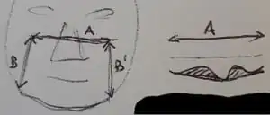- First, get the shape of the gap using a "contour gauge". The simplest version is with cooking sticks (1-2 mm diameter) run through a the holes of a strip of cardboard. Done between the cheekbones, this would give us the "3 shape" for that particular person.