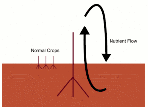 - Recycling nutrients - Deep roots take nutrients from deep in soil and pass closer to surface. Useful if soil has been leached