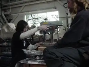 Most of the construction and testing took place at the Arcata Bike Library with the help of Bart Orlando. However, I did most of the cutting of the sheet metal at the HSU sculpture lab. We also used the pedal-powered tools there to construct the mount hot plate grill.