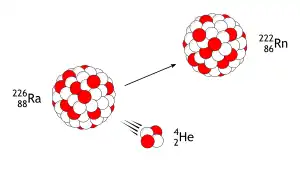 Alpha radiation are particles sent out by radioactive nuclei and each particle consists of two protons and two neutrons bound together. Alpha particles carry a positive charge and are the nuclei of helium atoms. Many radioactive nuclei that are more massive than lead will emit alpha particles during their decay. However, unlike beta and gamma radiation, alpha radiation can be blocked by the human skin. The alpha particles are emitted by radioactive nuclei such as uranium or radium in a process known as alpha decay.