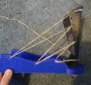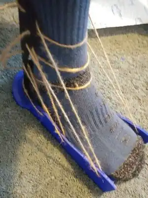 Wrap the string around the back of the leg to the closest hole on the right-hand side of the foot part.