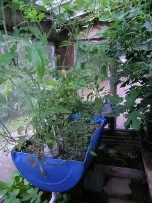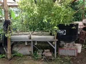 Other designs do not have valves but, instead, commit to manual labor. An aquaponics system was constructed for free in Thailand and requires no electrical input.[21] The following items are needed: a tank to hold the fish (like a large plastic tub), container for the plants, means to elevate plants above fish tank and a watering device.[21] To start up this system, it is important to put the fish in a least a week before. Also, before watering the plants, swirl the fish-rearing tank then fill the watering can. In this system, the fish-rearing tank will need to be cleaned periodically. Finally, it is important to flood containers at least three times a day.[21]