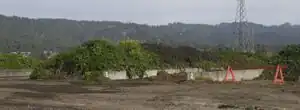 The Arcata Wastewater Treatment Plant utilizes an Aerated Static Pile composting process (Figure 6). The "static", or unturned compost piles utilize an air supply hooked up to a pipe that is located at the bottom of the pile. The pipe runs through the entire length of the pile and maintains the constant oxygen supply necessary for aerobic activity.[10] During active composting, microorganisms break down the organic material in the biosolids. As a result, carbon dioxide, water, compost, and heat are produced. The composting facility follows the EPA requirements for biosolid compost, performing daily checks to ensure the pile reaches 150 degrees Fahrenheit for three consecutive days, followed by ten days at 135 degrees Fahrenheit.[1] The high temperatures allow for pathogen and fecal coliform elimination or reduction. A pH level of 6 to 8, and a moisture content of 50 to 60% of total weight are also considered ideal conditions.[9] The active process takes about one month to for microorganisms to turn the biosolid and wood chips mix into a stabilized product.