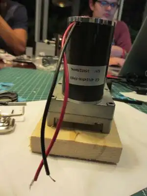 Use screws to connect the motor to the flat piece of wood with the four small holes.