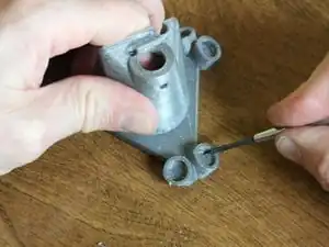- Remove floor material from the top opening in the end effector with the precision knife. Also remove material from the smaller hole in the top that is attached to the fan opening.Ream out Bowden sheath passage.