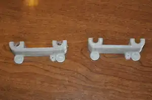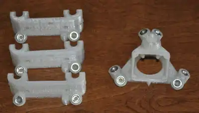 - Using the knife, remove the floor material from the carriages, opening the guide rod passages. Use the flat blade of the screwdriver to remove any protrusions from the inside of the bearing pockets - feel the inside of the pockets with a finger to ensure they are clear of protrusions so that the LM8UU bearings will seat completely in them.