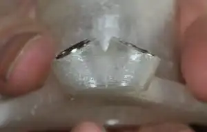 - Test fitting magnets.Test fit the magnets in each of their pockets - they should fit snugly and all should fit flatly against the bottom of their pockets. Use the stack of magnets to insert and remove the end magnet during testing fitting. Do not let the magnets slam together!Left: insufficiently cleaned; right: fully seating magnet