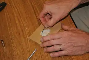 - Clean epoxy out of magnet holes with the tip of a small screwdriver and paper towel. After curing, excess epoxy that remains on the face of the magnets can be removed with a sharp knife, but cleaning uncured epoxy is easier.Cleaning epoxy off magnets.