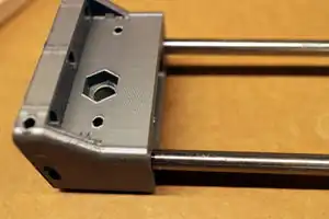 - Slide a LM8UU linear bearing onto each of the guide rods.Slide LM8UU bearings onto guide rods.