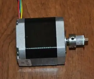 - Place pulleys on the motor shafts so that approximately 5mm of shaft extends beyond end of pulley (see picture). Rotate pulley so that one set screw will engage with the flat portion of the shaft and tighten that set screw. Tighten the second set screw. Repeat with remaining pulleys and motors.Attch pulleys.
