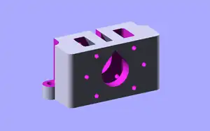 The extruder drive body is attached to a NEMA17 stepper motor, serving as the guide for filament and structural support for the preload idler. The extruder drive is the cold end of the extruder, providing the force required to push the filament into and through the hot end. | 1 |