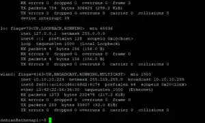 ifconfigresults for connected OrangePisudo ifconfigand look for the interfacewlan0. Identify and note the inet IP address for this interface (here,10.10.10.224) - Disconnect the ssh session using