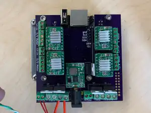 - Use the point of the precision knife to chamfer the holes in the mounting board before attaching the board. Attach the Athena Board to its mount using the four M3 x 6mm screws. A single orientation is possible.Attach Athena Board to mount.