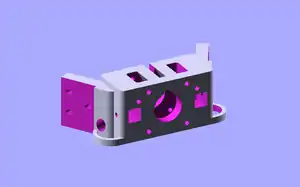 The extruder drive body is attached to a NEMA17 stepper motor, serving as the guide for filament and structural support for the preload idler. The extruder drive is the cold end of the extruder, providing the force required to push the filament into and through the hot end. | 1 |