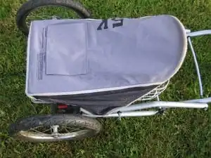 An Instep baby jogger/stroller was found at the Arcata Angles of Hope thrift store. It was purchased for $ 20.00. The stroller was disassembled and a bicycle trailer was constructed from the parts.