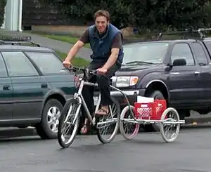 It's a lot of fun hauling cargo around on a bike. A bike trailer can make a bicycle more practical for transporting groceries, laundry, friends, etc. One of the least-expensive bike trailer designs out there, all that is needed to build this backpack-frame bike trailer is an old external-frame backpack, 18 feet of metal conduit, and some other hardware (see materials).