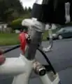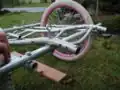 A group from the Fall 2007 Humboldt State Engineering 114 course also has attempted a backpack frame trailer from these instructions! We will insert suggestions to improve replicability for those who may need a few more details to build a trailer successfully. The group members were generally all familiar with bike mechanics, though none of us had ever built a bike trailer before and did not have any particular skills in building things. However, between the four of us, we managed to build a good trailer. It helped a lot to have extra hands to stabilize the pieces while the conduit was being drilled, as well as added perspective to ensure that holes were being drilled in vertically, rather than tilted.
