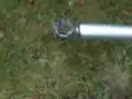 - Hammer the small piece of wood into one end and pre-drill a small hole for the eye screw. Screw in the eye screw so that the piece of wood will never budge.