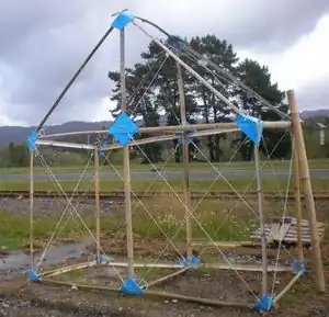 Bamboo can be utilized as a building material for scaffolding, bridges, houses and buildings. Bamboo, like wood, is a natural composite material with a high strength-to-weight ratio useful for structures. Bamboo's strength-to-weight ratio is similar to timber, and its strength is generally similar to a strong softwood or hardwood timber.