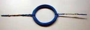 The Armature is the part of the motor which does the spinning in this situation. The armature was made by wrapping a length of the wrapping wire around a section of bamboo several times. The coil of wire was then bound in two places by small pieces of wire to keep it from coming apart. Extra lengths of wire were added to the axis for strength.