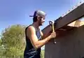 The pallet designed to keep the first storage tank upright is starting to break under the weight because no water has been removed from the tanks for crops. The downspout is crooked and stressed by the tank being lowered by the breaking pallet, and there's contaminant build up on the first flush container. Because of the neglect, there have been attempts to contact the farm to assist them in fixing and putting the system in to use, but as of 10/15/2016 no progress has been made on this front. Going forward this project could benefit from better instructions for the staff and volunteers of the farm that explain in detail the difference between the first flush and the storage containers.