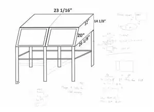 In light of this, we settled on using a box dryer, as the design was simpler, proven to heat to a higher temperature more quickly, and wouldn't lose as much heat in the transition from solar collector to drying tower. We used a design from instructables.com as a reference, but as our materials differed, we extensively modified the proportions and overall structure in order to optimize the dryer for our climate and make the most of the materials we had.