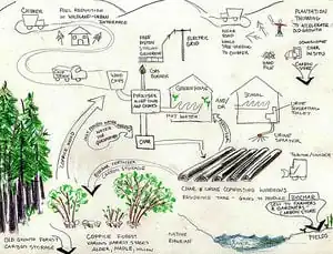 Agricultural charcoal production and interment is a key cyclical ingredient in the regeneration of human habitats, with potential economic significance.