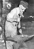 (Above) Modern machinery saves a lot of elbow grease. (Below) Blacksmiths have to take breaks frequently.