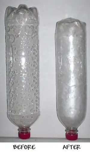 - Put the PET bottles in a pan, and heat up so the water in the PET bottles will steam.