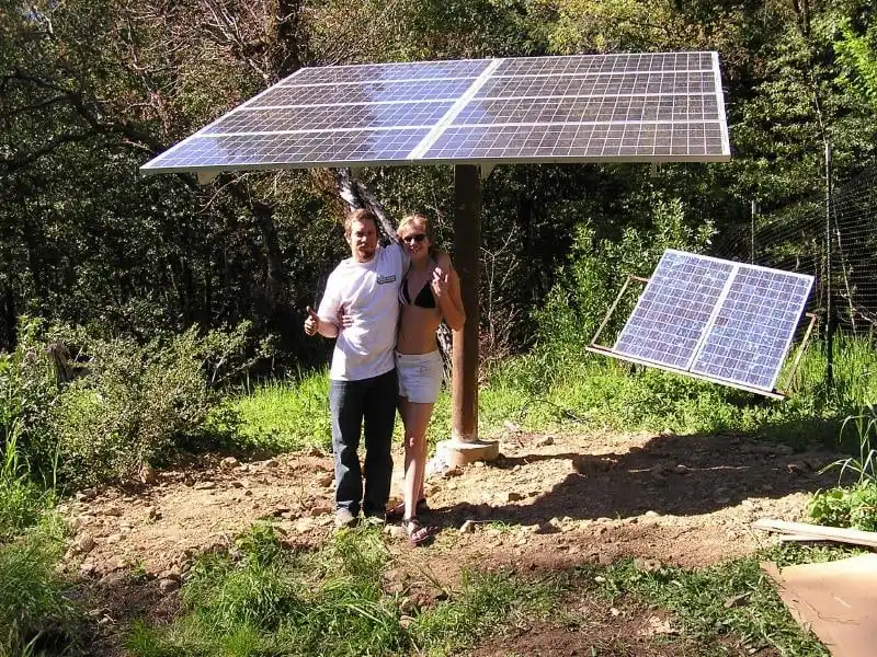 This project was to install a photovoltaic (PV) array with sufficient capacity to support all of the household demands, including a electric refrigerator, as well as a wood shop. There is a micro-hydro system on the property as well that delivers power in the winter when the creek is running strongly but can not keep up with demand in the summer when the rains have stopped. For this reason we had to install a power source for the summer months. Briceland gets a lot of sun in the summer, so with the installation of this PV array there is now plenty of power all year-round.