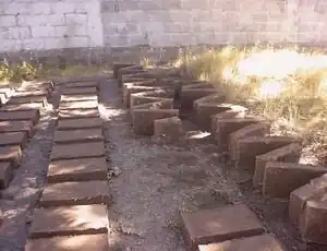 Rammed earth, also known as taipa[5] (Portuguese), tapial (Spanish), pisé de terre or simply pisé (French), is a technique used in the building of walls using the raw materials of earth, chalk, lime and gravel. It is an ancient building method that has seen a revival in recent years as people seek more sustainable building materials and natural building methods. Rammed earth walls are simple to construct, incombustible, thermally massive, very strong and hardwearing. Conversely they can be labour-intensive to construct without machinery (powered rammers), and if improperly protected or maintained they are susceptible to water damage. Traditionally, rammed earth buildings are found on every continent except Antarctica. From temperate and wet regions of north Europe[6] to semi dry deserts, mountain areas and the tropics. The availability of useful soil and building design for the local climatic conditions are the factors which favour its use.