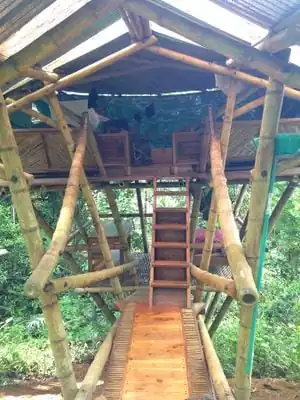 Bamboo can be utilized as a building material for scaffolding, bridges, houses and buildings. Bamboo, like wood, is a natural composite material with a high strength-to-weight ratio useful for structures. Bamboo's strength-to-weight ratio is similar to timber, and its strength is generally similar to a strong softwood or hardwood timber.