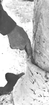 The meat is usually quartered to make it easier to handle. To quarter it, saw between the ribs horizontally, completely through the side. The meat should be quartered between the second and third ribs, leaving two ribs on the top quarter and the rest of the ribs on the bottom quarter (photo 18). The two quarters left hanging on the single tree should be equally balanced. If they are, then the beef was butchered and quartered correctly. After aging three days it may be cut into separate cuts.