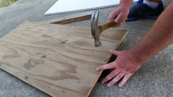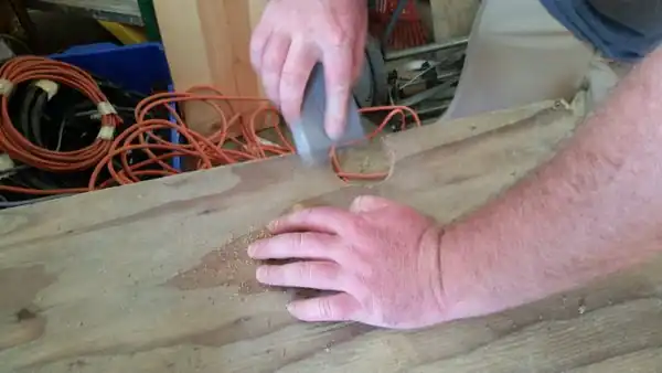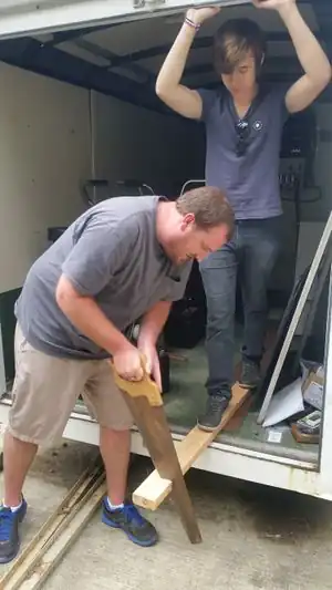 Step 5:Set wood where the new battery location is going to be, mark the wood where the drill holes need to be and drill through both the plank of wood and trailer floor. |