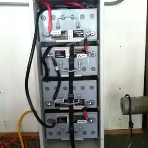 Batteries There are 4 deep cycle AGM Interstate batteries that are aligned in series Average total voltage is 48V- 52V when fully charged Around 40V is when the batteries are completely drained. Do NOT use the MEOW's energy when the voltage is around 40V this will cause permanent damage to the batteries. Battery Testing The battery voltage should be checked about once every month to make sure that the batteries aren't being over charged or completely drained Overcharged and drained are signs that the batteries need to be replaced.
