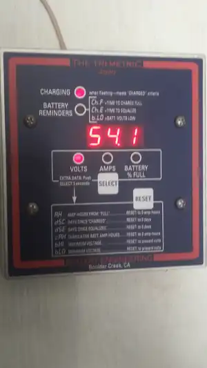 A charge controller is used in the MEOW's system to prevent overloading the batteries with charge or allowing the batteries to be drained too quickly.