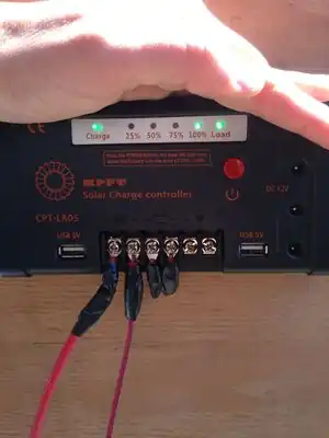 Make sure the charge controller has the 100% or 75% lights on (if not, jump to step 6).