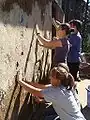 Very little has been done to this wall as well as the Cob wall. It was decorated with Earthen Plaster but because of the teams research and preparation was so thorough, there has been little to no maintenance done on the wall. So advice from one of the Co-Directors was to take your time. Because it's going to take a long time anyway, it's better to do it right the first time then to have to spend more time having to re-do some aspect of the project.