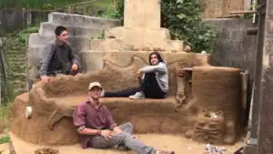 Team Rocket Power was assigned the Rocket Mass Heated (RMH) cobb bench on the grounds of Cal Poly Humboldt's Campus Center for Appropriate Technology (CCAT) in front of an existing outside fireplace. CCAT is a student-run instructional home that demonstrates appropriate technology to promote sustainable living and design. The cement foundation and plastered brick chimney will serve as foundation backrest for the bench where the back of the bench will be set directly against the fireplace.