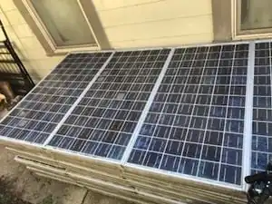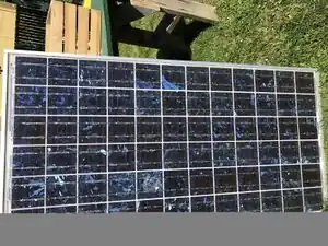 Fig 1: Front side of 100 Watt solar panel approximately 4 by 2 feet. This specific panel is currently putting out around 65 Watts.