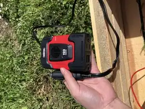 After this the system will almost be all connected. From the female cigar plug attached to the battery you will be able to connect the inverter which already has a male cigar port attached to it (see figure 4).