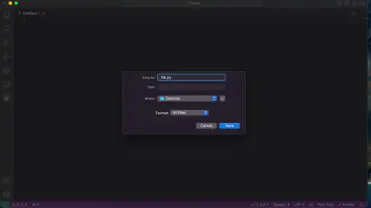 To create a new Python file, press (Ctrl/Cmd + N). Then, save the file by pressing (Ctrl/Cmd + S) and name it with a '.py' suffix.