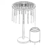 The equipment used in the pouring process (see Figure 4) is very simple. It consists of an old bicycle wheel in a horizontal plane supported by a vertical shaft, the length of which is determined by a suitable working position. The bottom end of the shaft should be located in a heavy base-plate, to ensure that the apparatus is safe for working. The wheel must be able to rotate freely. Small metal hooks made from thin wire are fixed to the outer rim of the wheel, from which the candle wicks are suspended. The wicks are weighted at their lower ends. A heated container, similar to that used for dipping, is positioned so that the outer rim of the wheel is above the centre of the container. A small ladle is required for pouring the heated wax over the wick.