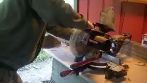 Using a compound miter saw, cut the bottom and top of the driftwood post.