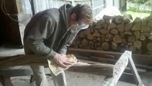 Using 150 grit sandpaper, sand down more of the minor imperfections in the wood to get it as smooth as possible.