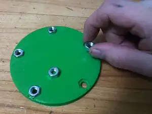 Insert 1/4-20 nuts into the bottom of the nut retaining plate. If the nuts will not go in all the way, use an object to scrape any extra plastic out of the nut hole.