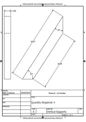 | 2X4's 10 ft | 3 | Wood is the material of choice for the framing, however different sized wood thinner/thicker pieces can be used instead of 2X4's | $12.00[4] |