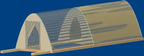 A chicken tractor can be of any design, materials, or size, as long as it is secure and movable by as few persons as reasonable. Typically it is either a box or a triangular "tent" shape. Skids or wheels, and handles can be attached for movement. Wood and wire screen are the most common materials. Sturdy plant materials such as reeds, stems, palm fronds, or branches can be used. An enclosed area for weather protection and roosting is included, and nest boxes for layers should be part of the construction. There are many possible designs and models, for construction suggestions see Chicken Tractor (Optimized Construction and Design).